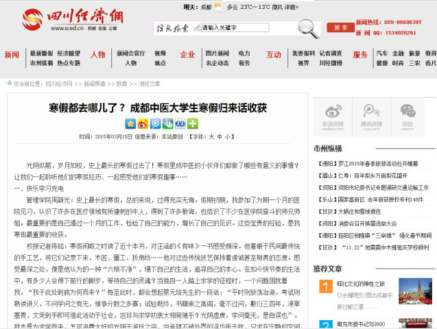 寒假都去哪儿了?成都中医大学生寒假归来话收获