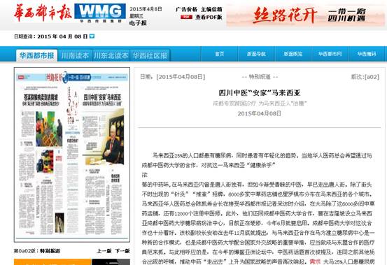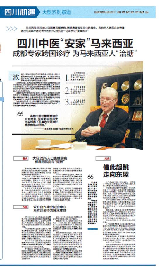 马来西亚25%的人口都患有糖尿病,同时患者有年轻化的趋势。当地华人医药总会希望通过与成都中医药大学的合作,对抗这一马来西亚“健康杀手”。