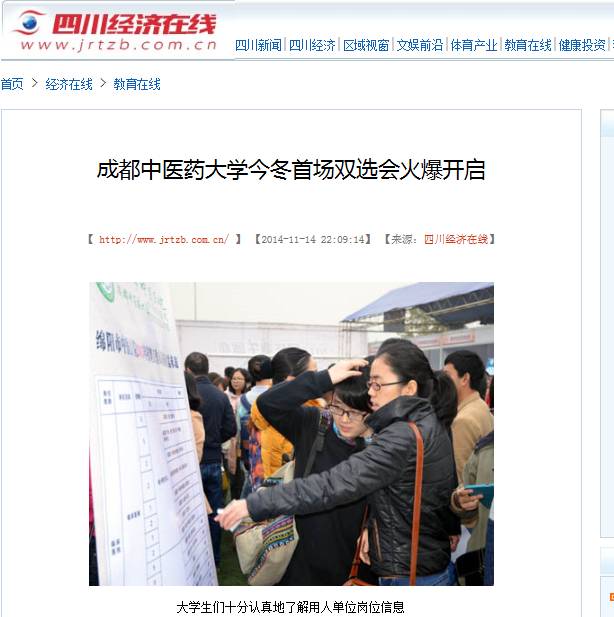 四川新闻网成都11月14日讯 “我觉得到基层医院的工作更能让我所学致用,这段经历将是非常珍贵的职业生涯积累。”成都中医药大学康复专业大四学生华敏是一位泸州姑娘,她将自己的简历投递给了通江周子坪社区卫生服务中心。11月14日,成都中医药大学2015届毕业生迎来首场大型就业双选会,到基层去正成为越来越多就业观日益成熟的大学生新选择。
