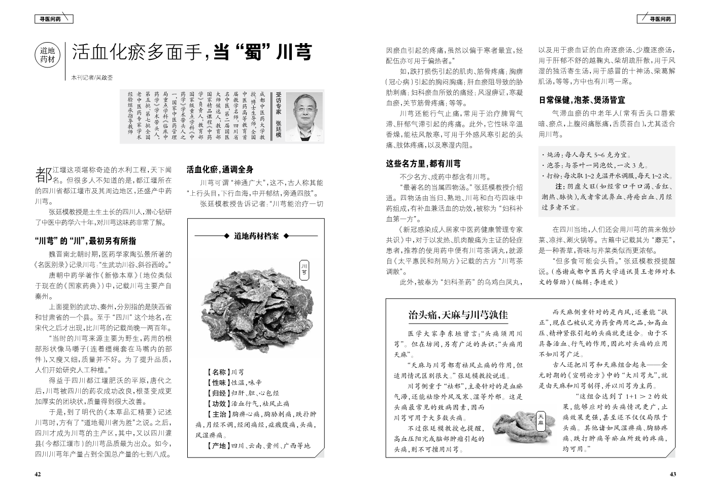 【中国家庭医生】活血化瘀多面手,当“蜀”川芎 发布时间:2023-04-27 00:00:00 浏览次数: 次 【字体:小 大】 近期,《中国家庭医生》杂志采访我校张廷模教授,讲述道地药材川芎,向大众科普有关川芎的知识和作用。《家庭医生》创刊于1983年,是一份面向大众的健康科普读物,月发行量持续多年超过100万份,联系两次荣获中国期刊最高奖“国家期刊奖”。 【打印正文】 上一条:【红星新闻】全国20位女性获“中国青年女科学家奖”个人奖,四川是她俩 下一条:【新华社】破译了→