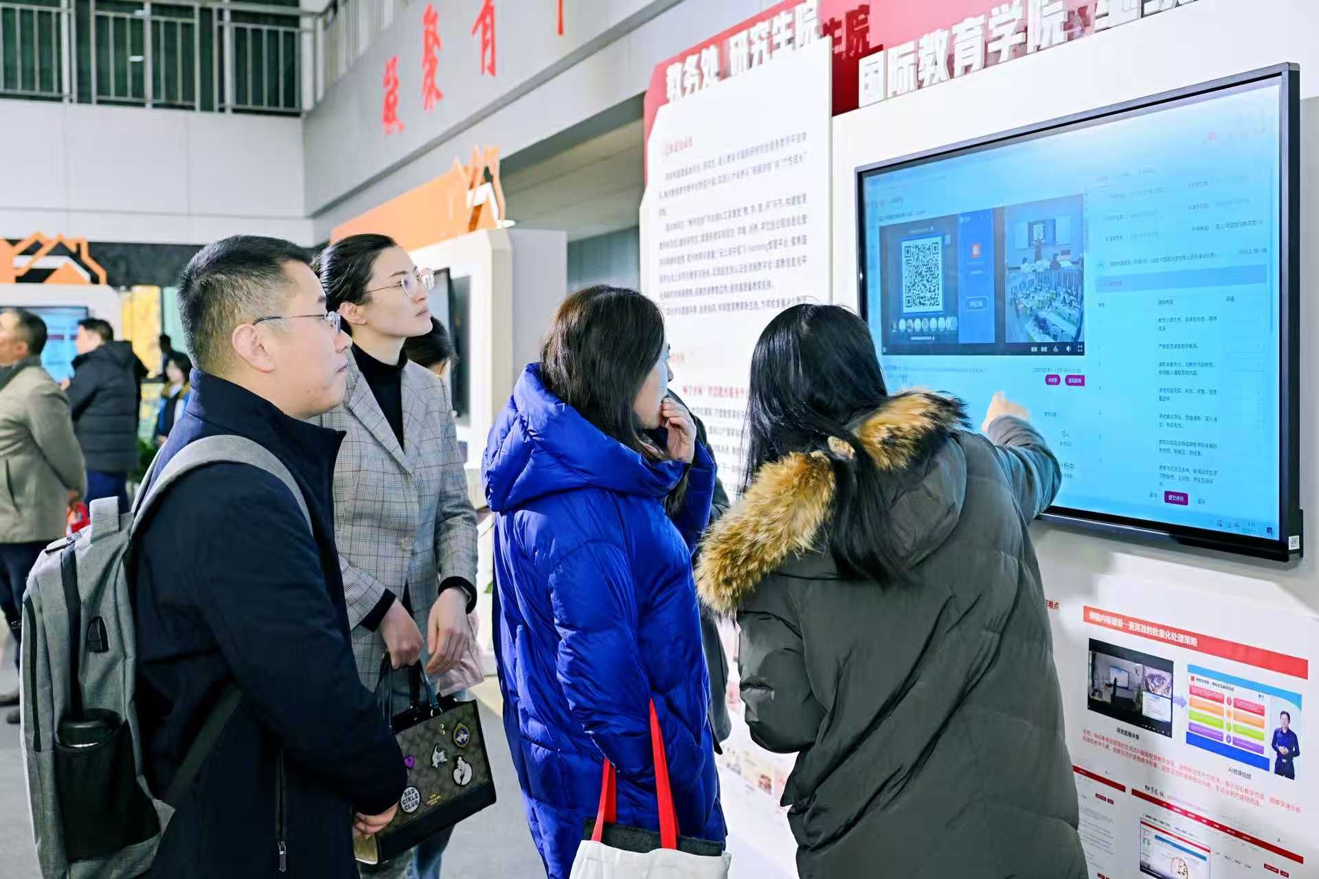 大会还设置了学校数智化建设系列成果专题展,会前师生参观了数智展厅并参与互动体验。机器人在现场讲解展陈内容,与大家互动交流,还献上“有模有样”的太极拳表演,赢得围观师生掌声与喝彩。在数字孪生AI服务平台互动体验区,只需要五分钟的数据采集时间,便可自动生成由数字人讲授的视频课件,参与数字人采集现场录制的教师感慨“体验感很好,操作也很便捷”。观看“畅学杏林”智慧教育服务平台AI课堂督导的展示后,在场教师表示:“数字化课堂的应用,将重新定义教师在课堂中的角色与作用,在课堂评价等方面引发教学变革,摒弃知识传授的传统课堂模式,真正将学生综合能力的提高作为课堂建设的主要目标。”