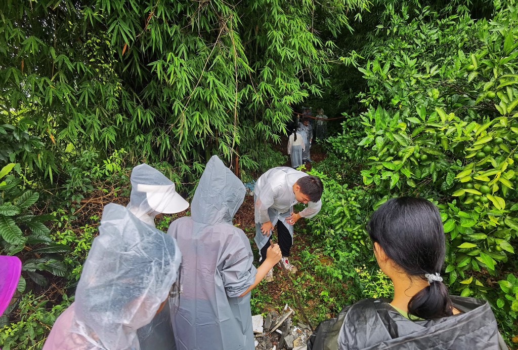 小队冒雨进入后山进行野外中药药植的鉴定与采集工作。在紧张而有序的工作中,尽管山路崎岖、脚底泥泞,队员们仍分工合作,群策群力,凭借扎实的专业知识和严谨的科学态度,成功识别并采集了多种具有药用价值的植物。读万卷书,行万里路。这次野外中药药植的鉴定与采集工作不仅锻炼了队员们的专业技能和团队协作能力,更让他们深刻地体会到了中药资源的贵和保护的重要性。