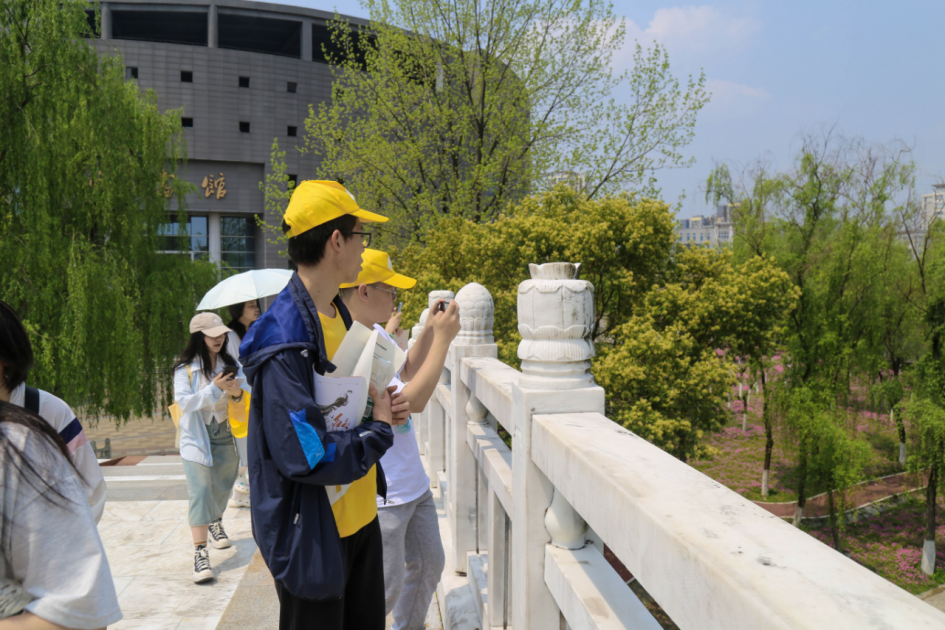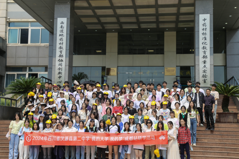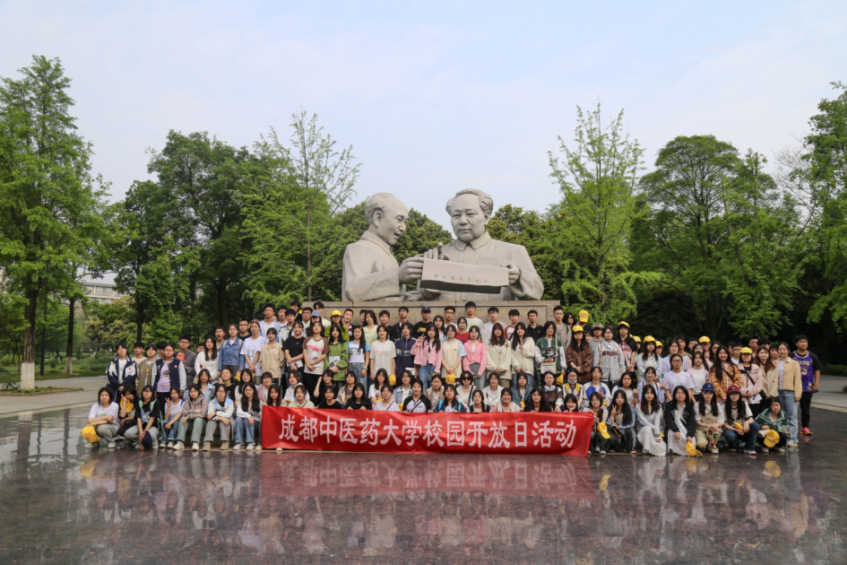 4月13日,上午9:00汉源二中的124名学生载着大巴从南门驶入校园。整顿好队伍后,在小招的带领下,校园体验活动正式开始。首先映入眼帘的是子午流注环周图雕像,这座雕像雕刻了吴棹仙教授向毛主席敬献«子午流注环周图»的纪念场景。这尊雕像迎来一张张青涩的面孔初入校园,又目送一个个学成的背影外出闯荡。带着对活动的期待,同学们在雕像下合影留恋。