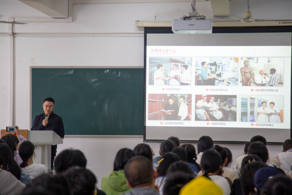 随着小招的步伐,穿过绿荫渐浓的小道,汉源二中同学们到了明智楼,护理学院魏瑞均老师以”什么是大学?我的大学是什么?”为主题开展中医药文化进校园第六场讲座。他详细介绍了成都中医药大学发展历程,科普了高考志愿填报规则,护理专业的职业发展途径和我校专项计划招生情况等,并表达了对汉源二中的同学们的期待和欢迎。