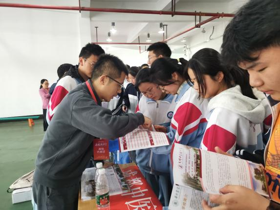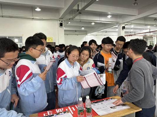 各高中咨询会现场,我校招生咨询台前考生和家长络绎不绝,招生组老师对考生和家长关心的学校基本情况、优势特色专业、往年录取情况、招生录取政策、培养目标和就业前景等问题进行热情、耐心、详细地解答,对报考意愿较强的考生及家长进行登记,以便后期回访,同时让其加入招生咨询群,在线持续回答问题。