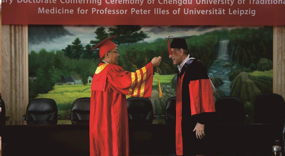 2019年11月,中医药院校第一个名誉博士学位在我校产生,授予德国莱比锡大学彼得·伊乐斯教授名誉博士学位