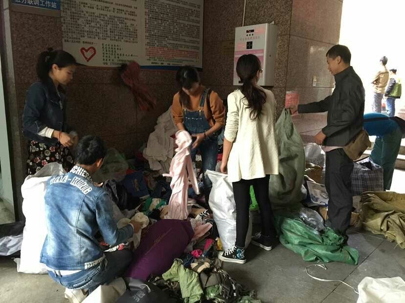 2015年10月30日,在党支部书记卢君蓉老师的带领下,来自不同班级的支部同学与四川爱心拼车部落的爱心人士一起在恒大城小区库房中将9月收集的全校师生的旧衣和小区住户捐赠的旧衣一起整理分类并打包,默默地奉献自己对阿坝贫困地区的群众的关心,再累也丝毫没有影响到大家的热情,整理与寄送活动从早上一直持续到下午1点,同学们与爱心人士一起将整理好了几十袋厚厚的冬衣,运到物流公司寄送给阿坝县龙藏乡的困难群众。