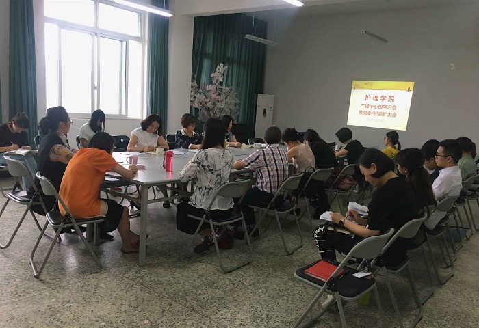 会上,孔静组织大家学习了校党委组织部《关于<2017年党员组织生活指导意见>的补充通知》和学校党委书记刘毅在《中国中医药报》上的署名文章《以“四剂药方”践行“四种形态”》,传达了近期学校干部大会、安全稳定信访工作会、总支书记会、精准扶贫工作会精神,并对秋季学期党务、安全稳定和工会工作作了安排布置;院长邬颖华、副院长高静也对开学以来学校科研、研究生、人事、教学等系列工作会精神和教学审核评估检查等情况进行了通报,并梳理和安排了秋季学期工作任务。邬颖华重申了《护理学院关于严明工作纪律 强化作风建设的通知》,并强调,长期以来学院的中心工作就是教学,人才培养是支撑学院发展的重要力量,提高教学质量的目标不会改变。本学期本科教学审核评估任务重,但常规教学运行马虎不得,要在常规工作中做出特色和亮点。