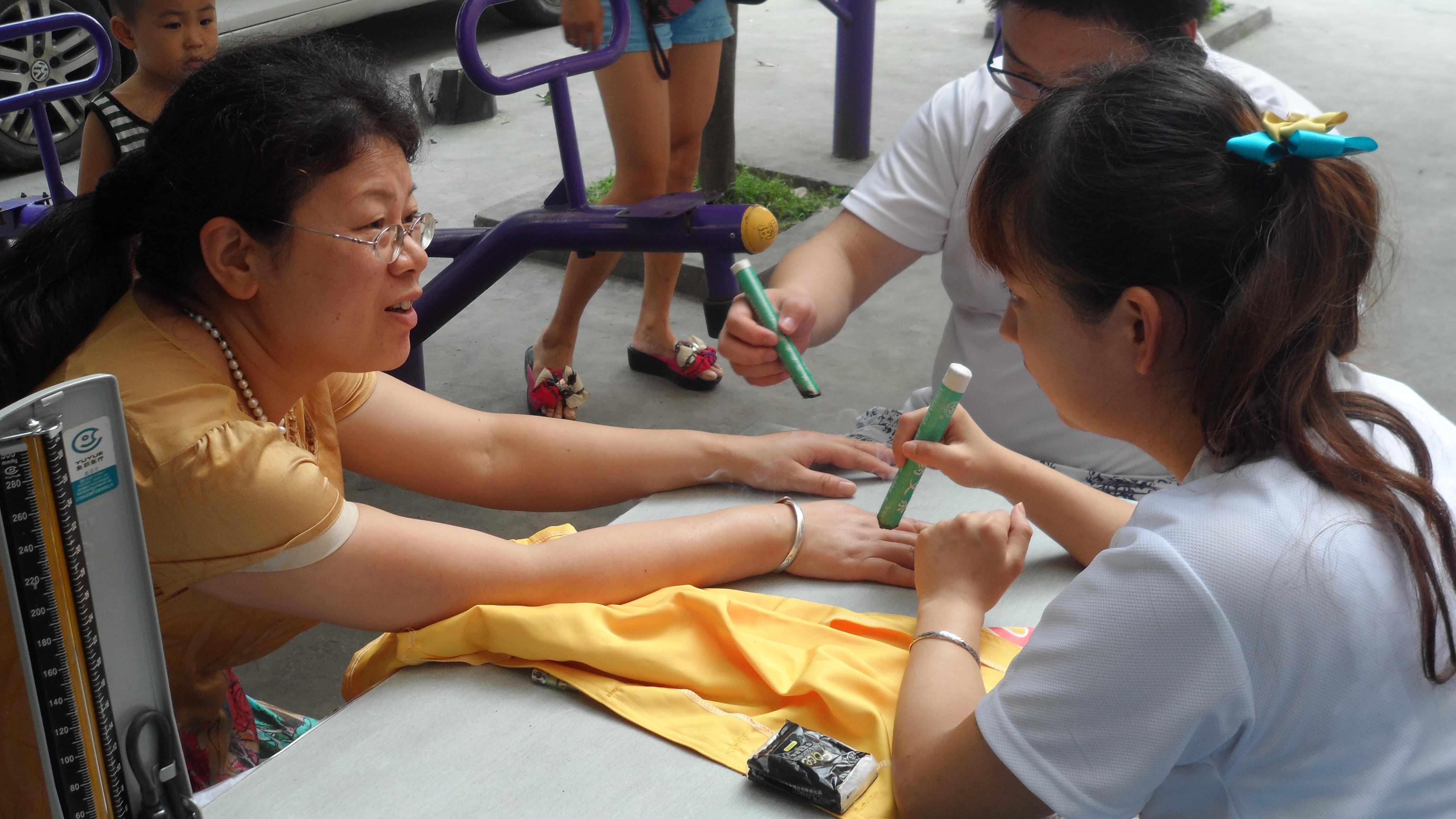 成都中医药大学2014杏林之夏暑期社会实践烛熙小分队的义诊活动完美落幕。除了汗水和疲惫,我想更多的可能是愉悦,欣慰。在这七天里,我们不断地给鱼凫社区的居民们测量血压、按摩、拔火罐、艾灸、刮痧、宣传健康小知识等。虽然每天的工作内容相差无几,但就是在这样的不断重复下。我们的理论知识和按摩,拔火罐,艾灸的操作技能都得到了不同程度的提高。