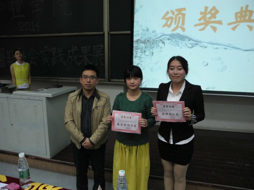 晚6点整,A-114座无虚席,在同学们热切期盼下,本次暑期社会成果展准时进行。孔静书记在致辞中表示,她对大学生开展暑期公益活动表示支持,并且在活动过程中收获进步,加以回馈社会的做法表示赞许,她也在此呼吁大学生积极参与此类活动,丰富大学生活,贴近社会。参加本次成果展的有青竹苗、园爱、四叶草等9支小队,每支小队用短短的5分钟,通过小队解说员,PPT和视频录像等形式,让观众一步步走进这些用爱和真心堆砌的世界,为老人们义务献诊、偏远山区送爱心、关爱脑瘫儿童,实践小队队员们用自己的实际行动帮助着这些需要关心、爱心的人群,也用他们微薄的力量改变着世界。最终,青竹苗实践小队获得此次比赛一等奖。
