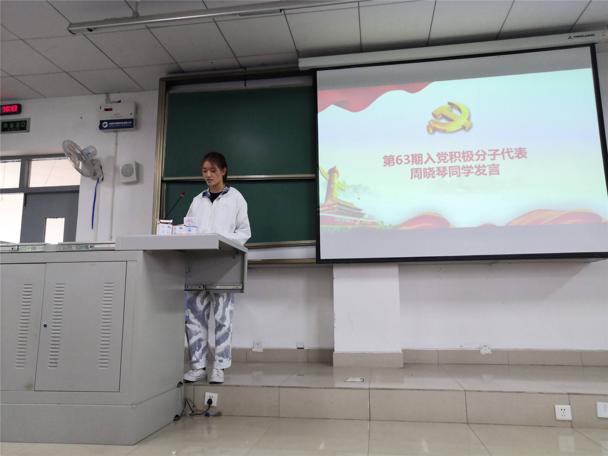 2020年秋发展对象培训班学员代表黄琬婷同学和第63期入党积极分子代表周晓琴同学分别发言,表达同学们将用过硬本领来回应时代挑战和责任担当,让青春在党和人民最需要的地方绽放绚丽之花。并代表本期所有学员表态严格遵守党校纪律,把所学知识用于指导行动,开拓进取、勇于创新,以实际行动争取早日加入中国共产党。