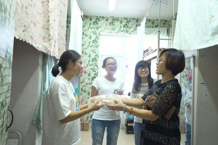 2017年9月28日,临近中秋、国庆佳节,在学校、学生处领导的安排和关心下,护理学院党委副书记孔静以及各班辅导员纷纷进到寝室给学生们送去了节日慰问,各栋公寓都弥漫着浓浓的节日氛围。