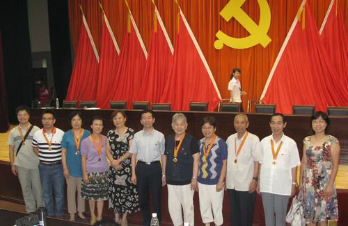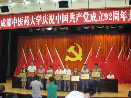 6月27日下午,学校党委在温江校区百会堂举行庆祝中国共产党成立92周年大会,会议表彰了2012-2013年度先进基层党组织、优秀党务工作者、优秀共产党员。离退休党委十二桥退休三支部(原)、汪家拐退休二支部2个支部被评为先进基层党组织,杨维选、张瑞芬、周裕隆、杨世平、陈仁旭、杨文台、贾帮岚、张文、王建蓉、曾明10名同志被评为优秀共产党员,刘世云、赵保荣、向其华、唐朝宗4名同志被评为优秀党务工作者,受到学校党委表彰。会上,张文、杨文台等作为老党员代表为新入党的党员佩戴了党徽。