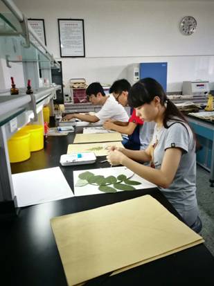 在实验室制作腊叶标本