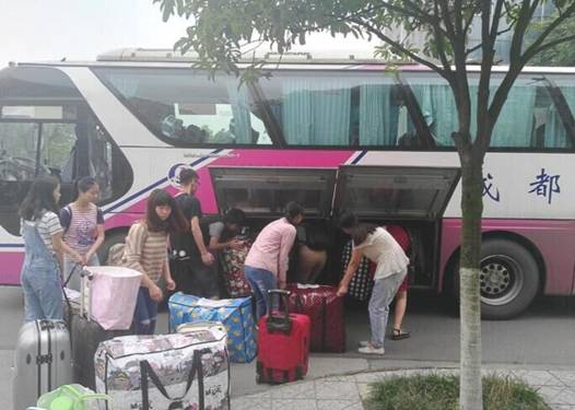 7:30,由大一和大二学生组成的志愿小队已经做好准备,在学姐们的楼下等候,帮助学姐们搬运行李。看着奔忙于楼上楼下的他们,即将离开的学姐们脸上露出了温暖的笑容。9:30,活动圆满结束。