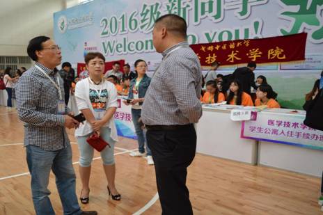 9月6日8:00,我院新生接待工作在体育馆内正式进行。我院党委书记王英文、院长李燕、党委副书记邓菲到现场看望前来报到的新生和家长。