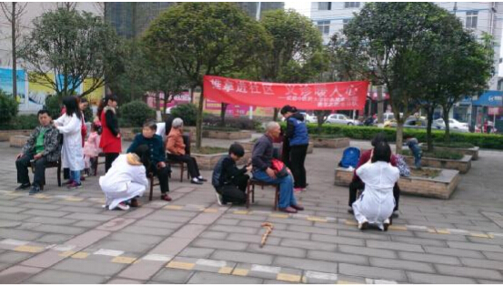2015年3月22日上午,针灸推拿学院/第三附属医院青年志愿者协会在温江四个合作社区开展了“推拿进社区”活动。作为开学的第一次推拿活动,志愿者们用自己的热情与真诚的态度为社区居民送去了新的祝福。
