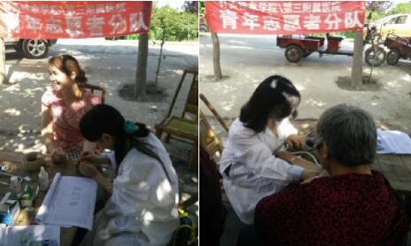 2015年5月30日,针灸推拿学院/第三附属医院青年志愿者协会继续开展了本学期主题为“服务临江,健康体检”系列体检活动。本次活动在和盛镇三队举行,在志愿者及党员先锋服务队队员的努力和社区市民们的积极配合下,本次活动取得了圆满成功。