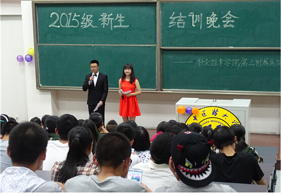 2015年9月19日20:00 针灸推拿学院/第三附属医院2015级新生结训晚会于温江校区B教313教成功举行,新生辅导员江俊及2015级全体新生参加了此次结训晚会。