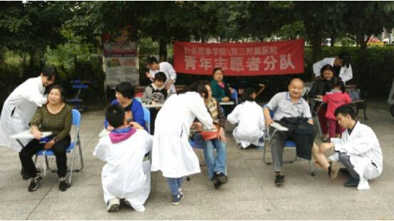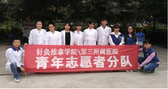 2015年10月24日上午,针灸推拿学院/第三附属医院青年志愿者协会在成都市温江区燎原社区等4个社区再次开展了推拿进社区活动,该活动在我院志愿者们的共同努力下取得圆满成功。