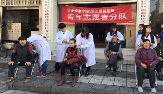 2015年11月15日,针灸推拿学院/第三附属医院青年志愿者协会在德通桥等社区进行了推拿进社区活动,有工作组28人和学习组12人参加了此次活动。在志愿者的努力和居民的积极配合下,本次活动取得圆满成功。