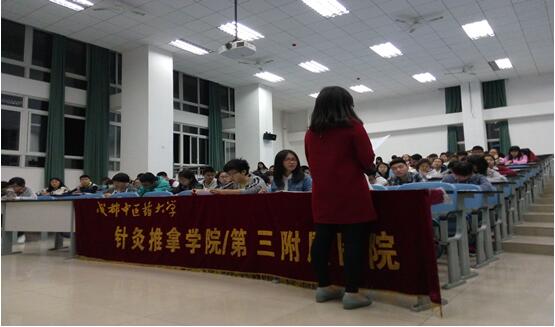 2016年4月5日晚8:30在温江校区·D教107教室,针灸推拿学院/第三附属医院分团委学生会召开4月月例会。执行副主席林思思、秘书长蔡翔宇、副主席李燕婷、副主席路晨溦出席本次会议,学院各班级班长与各部门干部干事参加了本次月例会。