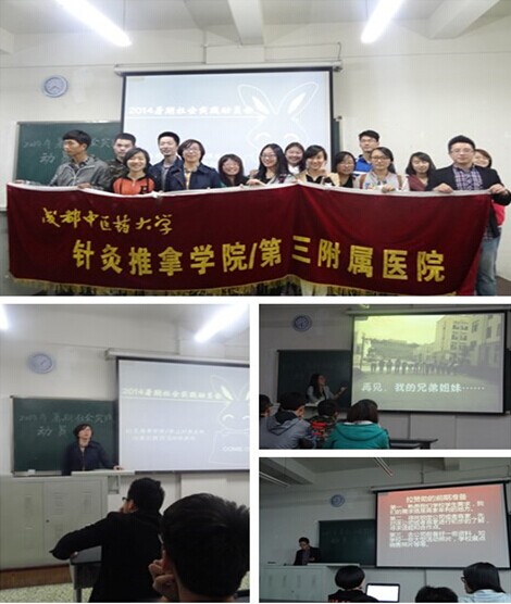 2014年4月3日下午6时针灸推拿学院/第三附属医院于A教303召开了一年一度的暑期社会实践动员大会。此次大会邀请到学院分团委指导老师冯丽娟为同学们鼓劲加油。