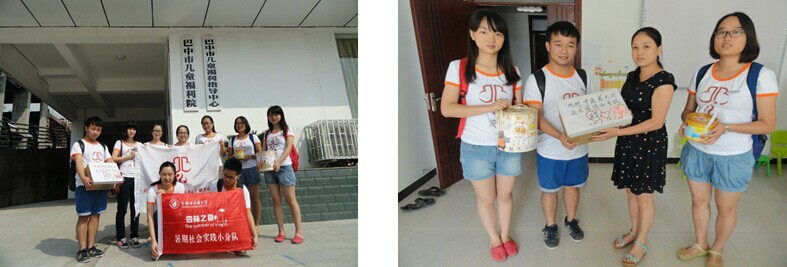 7月14日,实践队来到巴中市儿童福利院,为福利院儿童送去爱心捐赠物品,陪儿童们做游戏,一起学习。院方非常欢迎实践队的到来,同儿童们四小时的接触后,离别之际,孩子们对队员们依依不舍,纷纷送给队员们温暖的拥抱。
