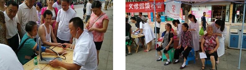 7月15、16日,实践队携手巴州区兴文镇卫生院在巴人广场开展“传承祖国医学,义诊回馈社会”健康义诊活动。活动内容包括:测量血压、健康咨询、分发健康小册及防暑常备药品、推拿按摩等。尽管天气炎热,队员们也激情洋溢,两天的活动都进行的如火如荼,总计服务市民们400余人次。巴中电视台、巴中日报、巴中晚报等媒体都争相对活动进行了详细报道。