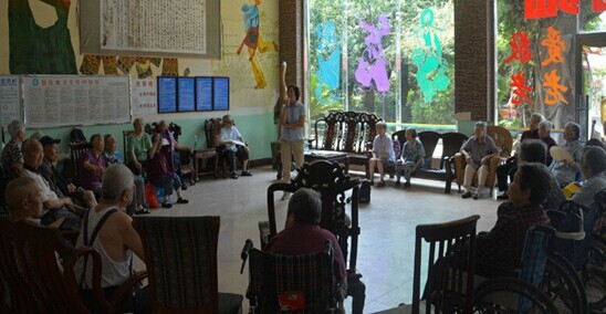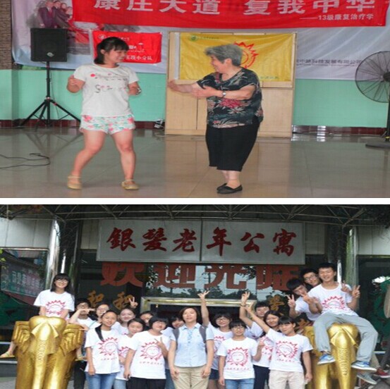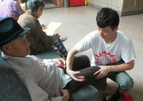 7月16日早上7点30分,“小太阳”暑期社会实践小分队的队员们早早的起床了,整装出发, 9点钟左右,到达了我们的下一站——银发养老公寓,这是位于成都市金牛区全兴路的一家养老院,这里有超过200位老人。当我们布置好现场立马准备给老人提供免费的推拿按摩的时候,有些老人怀着不信任的眼光看着我们,还好有这里的刘院长打破了僵局,说:“他们都是大学生,他们不收你们钱,来为你们免费按摩的,你们快来感受下,别辜负他们的一片好心啊!”说完,马上扶着一位婆婆坐在我们摆好的凳子上,第一位婆婆感受到我们的热情之后,非常满意,其他的爷爷奶奶看到后,也露出了欣喜的笑容,陆陆续续接受我们的推拿。虽然推拿很累,但是大家都很团结,轮流为老人按摩,换着休息。在空闲时间,我们走进养老公寓寝室宣传、陪老人聊天。下午2点30分,带队老师冯丽娟老师,为老人们提供了一个健康知识讲座,老人们听得入神,害怕听漏一点,我们也听得很认真。