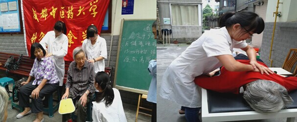 清早,志愿者们在青协队员的安排与带领下出发,在同学们到达各自的服务点后,立刻进入角色,给每一位前来接受志愿服务的居民们带去了专业的推拿服务。