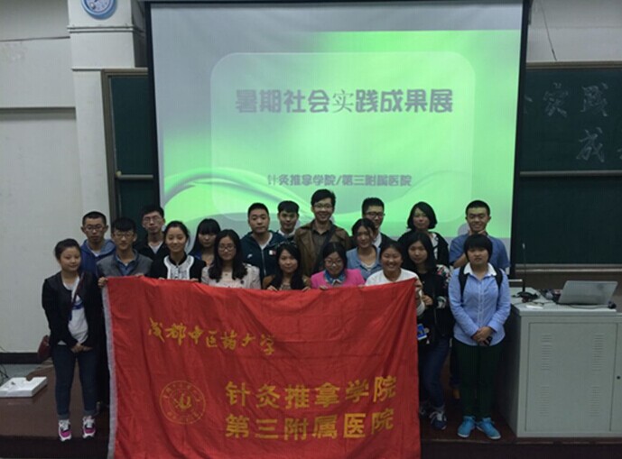 2014年10月12日下午6点,针灸推拿学院/第三附属医院2014年暑期社会实践成果展在温江校区B教313正式举行。