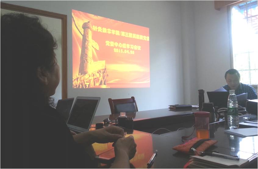 4月28日下午,在汪家拐校区行政办公室进行中心组学习,主要内容为传达学校中心组学习和领导班子思想政治建设工作推进会的主要会议精神,传达学校文件精神,传达省教育工委领导讲话精神,开展“三严三实”主题教育活动,学习学校党委“反思”意见,班子成员结合“讲政治、守纪律、守规矩”开展反思,学习《四川省委严守政治纪律严明政治规矩加强领导班子思想政治建设的十项规定》等七项内容。