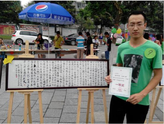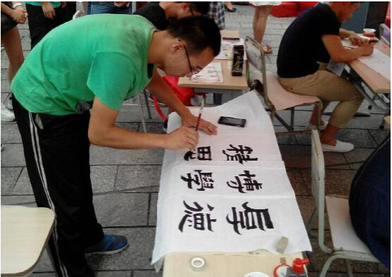 2015年5月20日12:00“杏林之春”大学生文化艺术节之“书画大赛”决赛在通惠美食广场顺利举行。此次比赛由党委宣传部、学工部、校团委协力主办,医学技术学院承办。我院王福民、谭雨竹两位同学代表学院参赛。