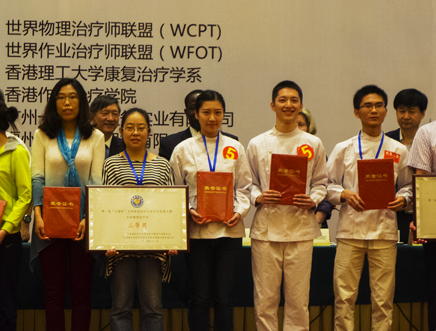 10月29日-11月1日,由中国康复医学会康复医学教育委员会、中国教育部医学技术类教学指导委员会联合主办,福建中医药大学承办的第二届“天瑞杯”全国康复治疗专业学生技能大赛暨教学风采展在福建福州隆重举行。本次比赛是历史上规模最大的全国性康复治疗学专业技能比赛,分为本科物理治疗组、本科作业治疗组、专科组。我院派出了由向伟、李梦晓、张凌瑞三名同学组成的参赛队,参加了本科物理治疗组角逐,喜获团体三等奖的佳绩。