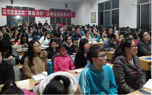 2014年11月27日晚18:20针灸推拿学院/第三附属医院2014年大学生科技学术节之“寻医问针”演播室为十二桥的同学们呈现了一场高质量、高品质的专业知识讲座——《中医传统刺法与针刀软组织松解术》。担任此次讲座的嘉宾为成都机关医院疼痛科主治医师温伯平主任,温主任是中华医学会针刀医学分会委员、四川省针刀医学会委员、成都中医药大学针刀医学教研室主任。其长期从事教学、临床工作具有丰富的知识储备。