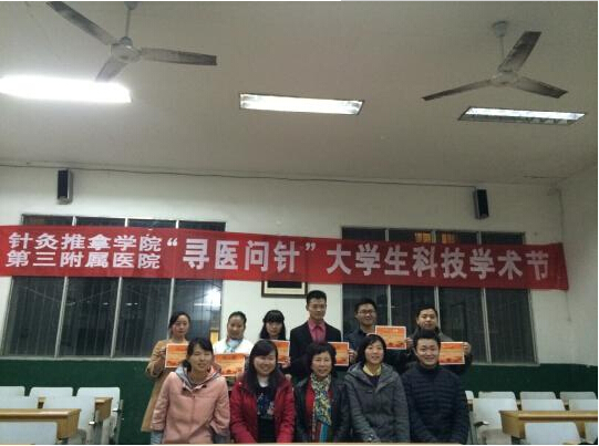 2014年12月4日18:30,成都中医药大学针灸推拿学院/第三附属医院在十二桥校区1教109举行了“寻医问针”大学生科技学术节之2014年大学生学术交流会。莅临本次交流会的评委有针灸推拿学博士生导师张虹教授,学院副院长、硕士研究生导师曾芳教授,学院党委副书记杜娟老师,参与交流会的还有辅导员老师代表和2011级热情洋溢的同学们。