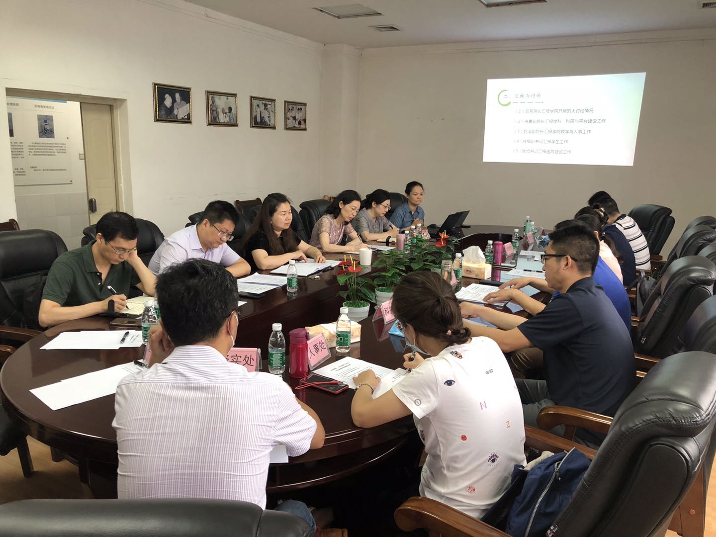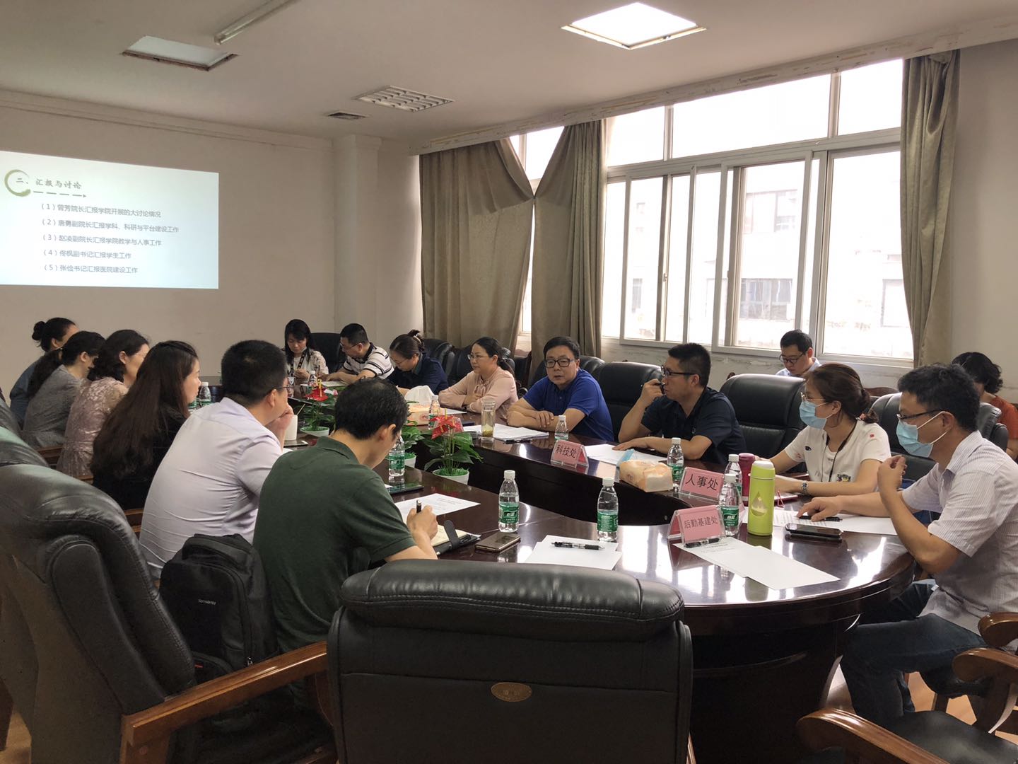 为进一步高质量推进“双一流”建设大讨论活动,破解学科发展难题, 6月17日上午校党委副书记沈涛教授带领发展规划处、科技处、研究生院、学生处、教务处、人事处、资产与实验室管理处、后勤基建处、计财处负责人到我院开展“传承精华、守正创新”大讨论调研。我院领导班子成员、各行政科室、教研室、实验中心负责人参加了此次大讨论。会议由我院党委书记张俭主持。