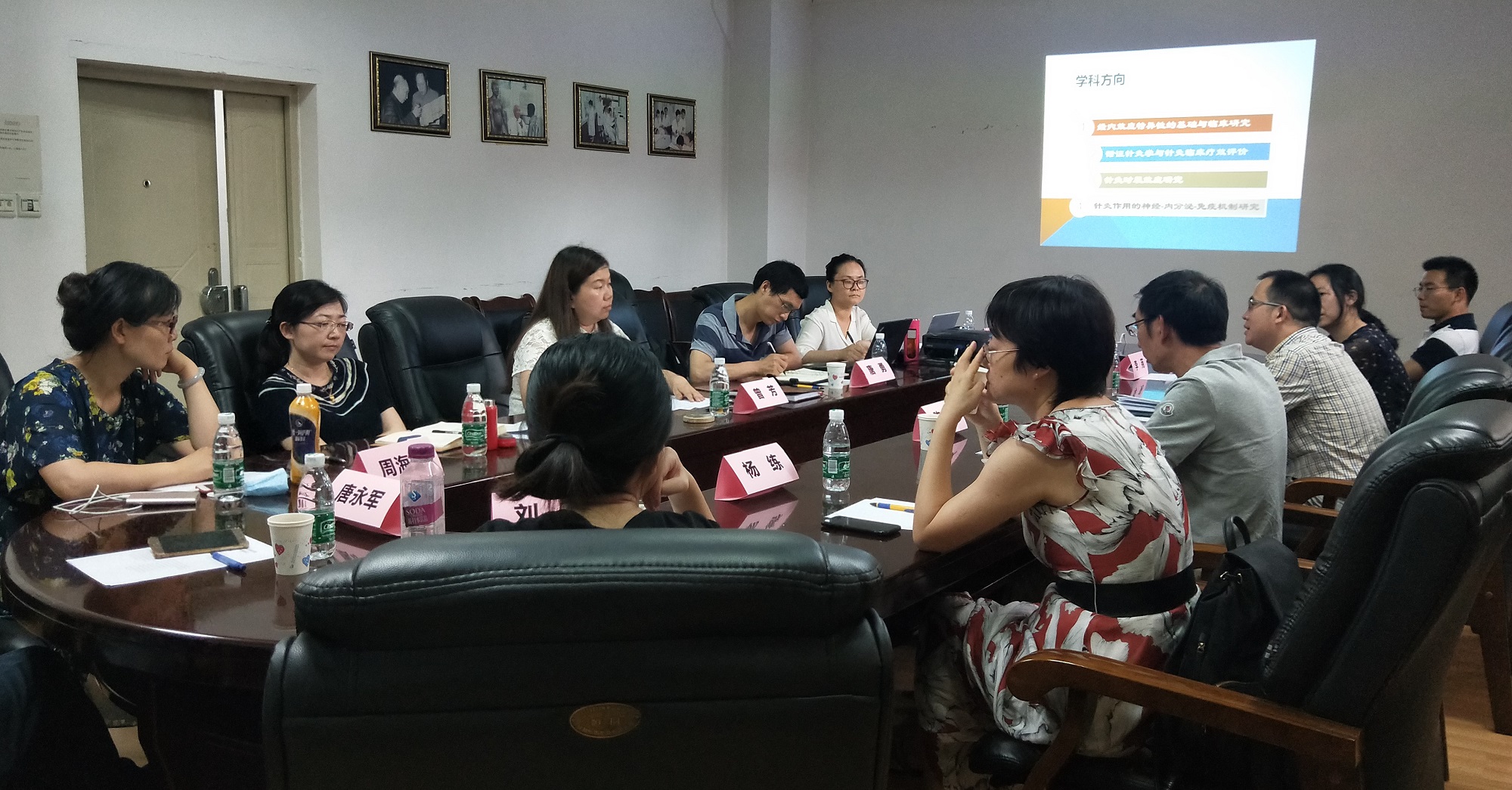 学院施行“走出去”策略,先后前往医学信息学院、临床医学院、眼科学院、基础医学院开展“学科交叉大讨论”。在与医学信息学院的交流讨论中,双方认为中医药人工智能、大数据分析、中医硬件智能装备开发将是未来中医学科交叉发展趋势,同时也是中医针灸推拿学科创新发展的实现路径。因此,未来学科发展中双方应互通有无,在交叉学科人才培养和科研成果转化上取得进步和成效,并以此次论坛为契机,在加强广泛研讨交流的基础上,不断碰撞科研思想火花,继续加深互利合作;在与临床医学院的交流讨论中,加强了针灸推拿学科与中医临床各科间的相互了解,并就医院科室设置“学术主任”、我院设立长效合作的联络员机制、双方开放共享GCP中心实验室与我院省级重点实验室仪器设备等达成了初步的合作意向;在与眼科学院的交流讨论中,就建立针灸-眼科临床基地、开展科学研究和研究生联合培养等方面达成了初步的合作意向,为“强强联合”共促发展奠定了良好基础;在与基础医学院的交流讨论中,双方围绕中医经典理论研究与应用,人才引进与PI制度,实验室平台应用等进行深入交流,以期组建交叉学科的课题研究团队、搭建交叉学科平台,推动学科发展。